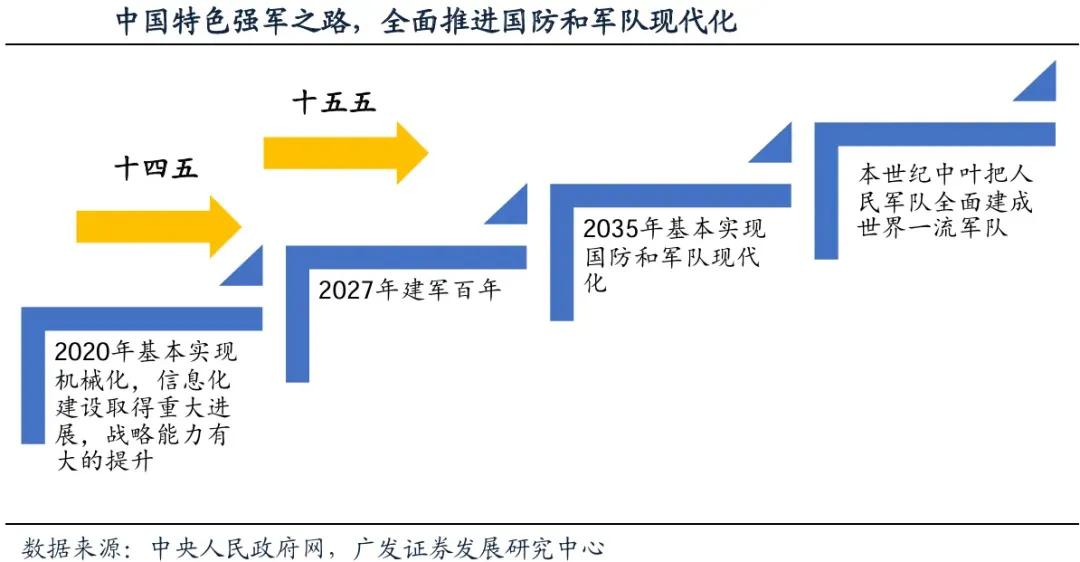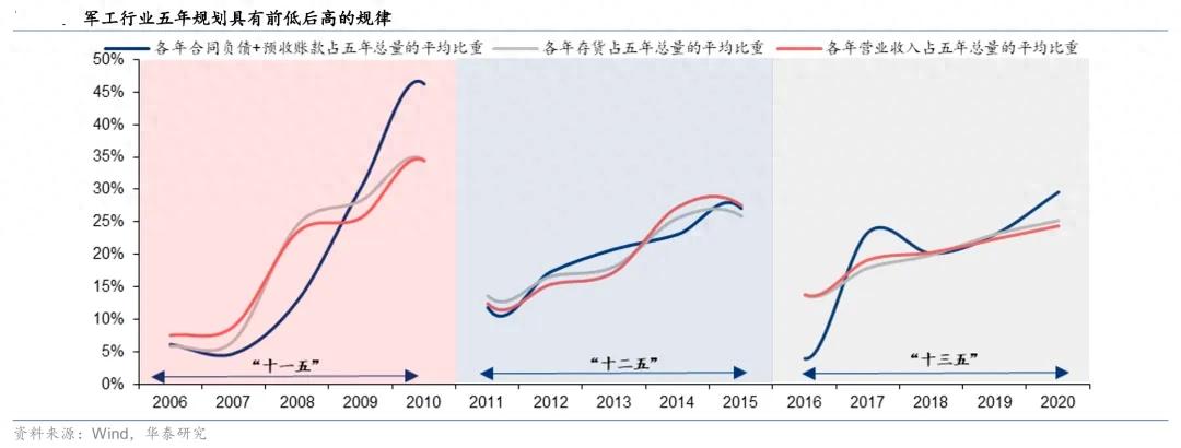 军工行业具有明显的计划属性,以五年为一个周期,五年规划对于行业景气和市场预期有着重要影响,往往呈现前低后高的特点。