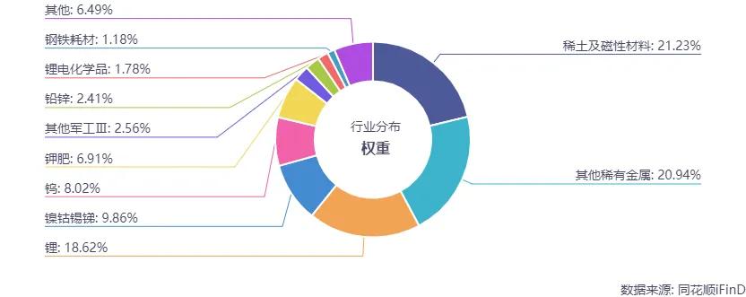 数据显示,当前市面上锂矿概念占比较高的指数为中证稀有金属主题指数,简称CS稀金属(930632.CSI)。