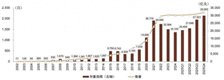 中金公司报告显示,截至2025年末,名义“固收+”(含一级债基、二级债基、偏债混合基金、转债基金)在管规模突破2.735万亿元,已创历史新高,存续“固收+”突破2.99万亿元。
